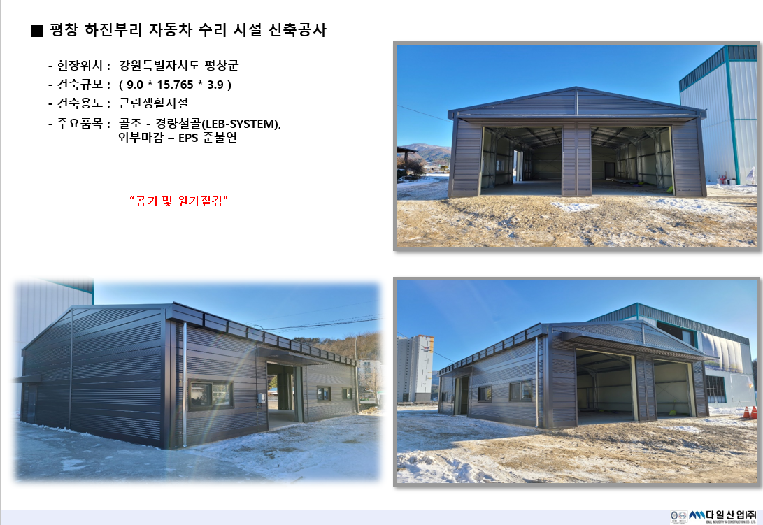 2025년 | 평창 하진부리 자동차 수리시설 신축공사 페이지 정보 작성자 : 다일산업(주) 작성일 : 26-02-04 16:13 조회 : 54회 관련링크 본문 이전글 다음글 목록 개인정보처리방침 “다일산업(주)“(이하 “회사”)는 개인정보보호법에 따라 이용자의 개인정보 보호 및 권익을 보호하고 개인정보와 관련한 이용자의 고충을 원활하게 처리할 수 있도록 다음과 같은 처리방침을 두고 있습니다. 고객님의 정보는 개인의 소중한 자산인 동시에 회사 운영의 중요한 자료가 됩니다. 그러므로 회사는 운영상의 모든 과정에서 고객님의 개인정보를 보호하는데 최선의 노력을 다할 것을 약속 드립니다. 회사는 개인정보처리방침을 개정하는 경우 웹사이트를 통하여 공지할 것입니다. 제 1장. 개인정보 수집 동의절차 회사는 귀하께서 웹사이트의 개인정보보호방침 또는 이용약관의 내용에 대해 (동의한다)버튼 또는 (동의하지 않는다)버튼을 클릭할 수 있는 절차를 마련하여 (동의한다)버튼을 클릭하면 개인정보 수집에 대해 동의한 것으로 봅니다. 제 2장. 개인정보의 수집 및 이용 목적 회사는 개인정보를 다음의 목적을 위해 활용합니다. 처리한 개인정보는 다음의 목적 이외의 용도로는 사용되지 않으며 이용 목적이 변경될 시 사전동의를 구할 예정입니다. 가. 성명, 아이디, 비밀번호 : 회원 가입의사 확인, 서비스 부정이용 방지, 접속 빈도파악, 회원제 서비스 이용에 따른 본인 식별 절차 나. 이메일주소, 전화번호(수신여부 확인) : 고지사항 전달, 본인 의사 확인, 불만 처리 등 원활한 의사소통 경로의 확보, 이벤트 및 광고성 정보 제공 및 참여기회 제공, 접속 빈도파악 또는 회원의 서비스이용에 대한 통계 다. 주소, 전화번호 : 경품과 물품 배송에 대한 정확한 배송지의 확보 제 3장. 광고정보의 전송 가. 회사는 귀하의 명시적인 수신거부의사에 반하여 영리목적의 광고성 정보를 전송하지 않습니다. 나. 회사는 약관변경, 기타 서비스 이용에 관한 변경사항, 새로운 서비스/신상품이나 이벤트 정보, 기타 상품정보 등을 전자우편, 휴대폰 문자전송 기타 전지적 전송매체 등의 방법으로 알려드립니다. 이 경우 관련 법령상 명시사항 및 명시방법을 준수합니다. 다. 회사는 상품정보 안내 등 온라인 마케팅을 위해 광고성 정보를 전자우편 등으로 전송하는 경우 전자 우편의 제목란 및 본문란에 귀하가 쉽게 알아 볼 수 있도록 조치합니다. 제 4장. 개인정보의 수집범위 회사는 별도의 회원가입 절차 없이 대부분의 콘텐츠에 자유롭게 접근할 수 있습니다. 회원제 서비스를 이용하고자 할 경우 다음의 정보를 입력해주셔야 합니다. 가. 개인정보 수집항목 : 이름, 이메일, 생년월일, 아이디, 비밀번호, 성별, 주소, 휴대폰 번호(전화), 이메일 수신여부, SMS 수신여부, 서비스 이용기록, 접속로그, 받는 고객 정보(이름, 전화번호, 주소, 이메일) 나. 개인정보 수집방법 : 홈페이지 내 회원가입 및 게시판 등 제 5장. 개인정보의 보유 및 이용기간 회사는 개인정보 수집 및 이용목적이 달성된 후에는 해당 정보를 지체 없이 파기합니다. 단, 다음의 정보에 대해서는 아래의 이유로 명시한 기간 동안 보존합니다. -보존항목 : 이름, 로그인 ID, 비밀번호, 이메일, 생년월일 -보존근거 : 불량 회원의 부정한 이용의 재발 방지 -보존기간 : 1개월 그리고 관계법령의 규정에 의하여 보존할 필요가 있는 경우 회사는 아래와 같이 관계법령에서 정한 일정한 기간 동안 회원정보를 보관합니다. 소비자의 불만 또는 분쟁처리에 관한 기록 : 3년 (전자상거래 등에서의 소비자보호에 관한 법률) 제 6장. 개인정보의 파기 절차 및 방법 회사는 원칙적으로 개인정보 처리목적이 달성된 경우에는 지체 없이 해당 개인정보를 파기합니다. 파기의 절차, 기한 및 방법은 다음과 같습니다. -파기절차 회원님이 회원가입 등을 위해 입력하신 정보는 목적 달성 후 별도의 DB로 옮겨져(종이의 경우 별도의 서류함) 내부 방침 및 기타 관련 법령에 의한 정보보호 사유에 따라(보유 및 이용기간 참조) 일정 기간 저장 된 후 파기합니다. 별도 DB로 옮겨진 개인정보는 법률에 의한 경우가 아니고서는 보유 이외의 다른 목적으로 이용되지 않습니다. -파기기한 이용자의 개인정보는 개인정보의 보유기간이 경과된 경우에는 보유기간의 종료일로부터 5일 이내에, 개인정보의 처리 목적 달성, 해당 서비스의 폐지, 사업의 종료 등 그 개인정보가 불필요하게 되었을 때에는 개인정보의 처리가 불필요한 것으로 인정되는 날로부터 5일 이내에 그 개인정보를 파기합니다. -파기방법 전자적 파일 형태의 정보는 기록을 재생할 수 없는 기술적 방법을 사용합니다. 제 7장. 개인정보의 안전성 확보 조치 회사는 개인정보보호법 제29조에 따라 다음과 같이 안전성 확보에 필요한 조치를 하고 있습니다. 가. 개인정보 취급 직원의 최소화 및 교육 개인정보를 취급하는 직원을 지정하고 담당자에 한정시켜 최소화 하여 개인정보를 관리하는 대책을 시행하고 있습니다. 나. 개인정보의 암호화 이용자의 개인정보는 비밀번호는 암호화 되어 저장 및 관리되고 있어, 본인만이 알 수 있으며 중요한 데이터