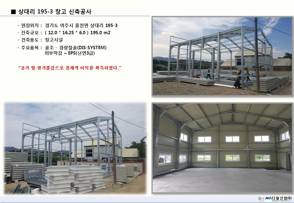 상대리 195-3창고 신축공사 페이지 정보 작성자 : 다일산업(주) 작성일 : 20-06-17 10:46 조회 : 2,230회 관련링크 본문 이전글 다음글 목록 개인정보처리방침 “다일산업(주)“(이하 “회사”)는 개인정보보호법에 따라 이용자의 개인정보 보호 및 권익을 보호하고 개인정보와 관련한 이용자의 고충을 원활하게 처리할 수 있도록 다음과 같은 처리방침을 두고 있습니다. 고객님의 정보는 개인의 소중한 자산인 동시에 회사 운영의 중요한 자료가 됩니다. 그러므로 회사는 운영상의 모든 과정에서 고객님의 개인정보를 보호하는데 최선의 노력을 다할 것을 약속 드립니다. 회사는 개인정보처리방침을 개정하는 경우 웹사이트를 통하여 공지할 것입니다. 제 1장. 개인정보 수집 동의절차 회사는 귀하께서 웹사이트의 개인정보보호방침 또는 이용약관의 내용에 대해 (동의한다)버튼 또는 (동의하지 않는다)버튼을 클릭할 수 있는 절차를 마련하여 (동의한다)버튼을 클릭하면 개인정보 수집에 대해 동의한 것으로 봅니다. 제 2장. 개인정보의 수집 및 이용 목적 회사는 개인정보를 다음의 목적을 위해 활용합니다. 처리한 개인정보는 다음의 목적 이외의 용도로는 사용되지 않으며 이용 목적이 변경될 시 사전동의를 구할 예정입니다. 가. 성명, 아이디, 비밀번호 : 회원 가입의사 확인, 서비스 부정이용 방지, 접속 빈도파악, 회원제 서비스 이용에 따른 본인 식별 절차 나. 이메일주소, 전화번호(수신여부 확인) : 고지사항 전달, 본인 의사 확인, 불만 처리 등 원활한 의사소통 경로의 확보, 이벤트 및 광고성 정보 제공 및 참여기회 제공, 접속 빈도파악 또는 회원의 서비스이용에 대한 통계 다. 주소, 전화번호 : 경품과 물품 배송에 대한 정확한 배송지의 확보 제 3장. 광고정보의 전송 가. 회사는 귀하의 명시적인 수신거부의사에 반하여 영리목적의 광고성 정보를 전송하지 않습니다. 나. 회사는 약관변경, 기타 서비스 이용에 관한 변경사항, 새로운 서비스/신상품이나 이벤트 정보, 기타 상품정보 등을 전자우편, 휴대폰 문자전송 기타 전지적 전송매체 등의 방법으로 알려드립니다. 이 경우 관련 법령상 명시사항 및 명시방법을 준수합니다. 다. 회사는 상품정보 안내 등 온라인 마케팅을 위해 광고성 정보를 전자우편 등으로 전송하는 경우 전자 우편의 제목란 및 본문란에 귀하가 쉽게 알아 볼 수 있도록 조치합니다. 제 4장. 개인정보의 수집범위 회사는 별도의 회원가입 절차 없이 대부분의 콘텐츠에 자유롭게 접근할 수 있습니다. 회원제 서비스를 이용하고자 할 경우 다음의 정보를 입력해주셔야 합니다. 가. 개인정보 수집항목 : 이름, 이메일, 생년월일, 아이디, 비밀번호, 성별, 주소, 휴대폰 번호(전화), 이메일 수신여부, SMS 수신여부, 서비스 이용기록, 접속로그, 받는 고객 정보(이름, 전화번호, 주소, 이메일) 나. 개인정보 수집방법 : 홈페이지 내 회원가입 및 게시판 등 제 5장. 개인정보의 보유 및 이용기간 회사는 개인정보 수집 및 이용목적이 달성된 후에는 해당 정보를 지체 없이 파기합니다. 단, 다음의 정보에 대해서는 아래의 이유로 명시한 기간 동안 보존합니다. -보존항목 : 이름, 로그인 ID, 비밀번호, 이메일, 생년월일 -보존근거 : 불량 회원의 부정한 이용의 재발 방지 -보존기간 : 1개월 그리고 관계법령의 규정에 의하여 보존할 필요가 있는 경우 회사는 아래와 같이 관계법령에서 정한 일정한 기간 동안 회원정보를 보관합니다. 소비자의 불만 또는 분쟁처리에 관한 기록 : 3년 (전자상거래 등에서의 소비자보호에 관한 법률) 제 6장. 개인정보의 파기 절차 및 방법 회사는 원칙적으로 개인정보 처리목적이 달성된 경우에는 지체 없이 해당 개인정보를 파기합니다. 파기의 절차, 기한 및 방법은 다음과 같습니다. -파기절차 회원님이 회원가입 등을 위해 입력하신 정보는 목적 달성 후 별도의 DB로 옮겨져(종이의 경우 별도의 서류함) 내부 방침 및 기타 관련 법령에 의한 정보보호 사유에 따라(보유 및 이용기간 참조) 일정 기간 저장 된 후 파기합니다. 별도 DB로 옮겨진 개인정보는 법률에 의한 경우가 아니고서는 보유 이외의 다른 목적으로 이용되지 않습니다. -파기기한 이용자의 개인정보는 개인정보의 보유기간이 경과된 경우에는 보유기간의 종료일로부터 5일 이내에, 개인정보의 처리 목적 달성, 해당 서비스의 폐지, 사업의 종료 등 그 개인정보가 불필요하게 되었을 때에는 개인정보의 처리가 불필요한 것으로 인정되는 날로부터 5일 이내에 그 개인정보를 파기합니다. -파기방법 전자적 파일 형태의 정보는 기록을 재생할 수 없는 기술적 방법을 사용합니다. 제 7장. 개인정보의 안전성 확보 조치 회사는 개인정보보호법 제29조에 따라 다음과 같이 안전성 확보에 필요한 조치를 하고 있습니다. 가. 개인정보 취급 직원의 최소화 및 교육 개인정보를 취급하는 직원을 지정하고 담당자에 한정시켜 최소화 하여 개인정보를 관리하는 대책을 시행하고 있습니다. 나. 개인정보의 암호화 이용자의 개인정보는 비밀번호는 암호화 되어 저장 및 관리되고 있어, 본인만이 알 수 있으며 중요한 데이터는 파일 및 전송 데이