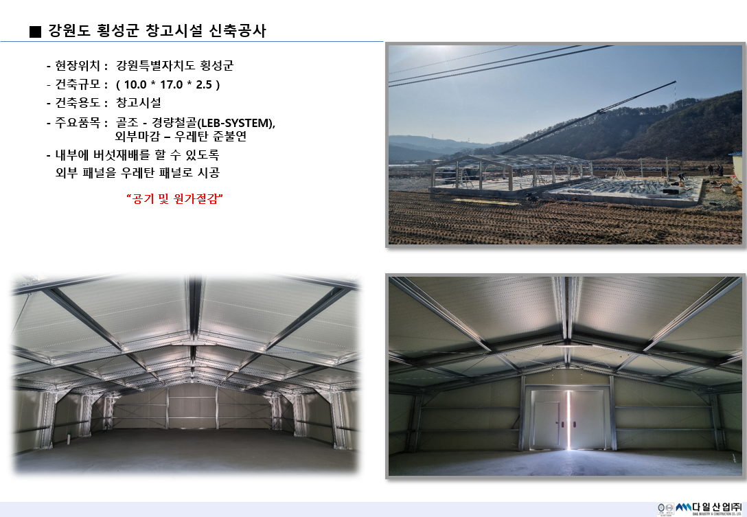 강원도 횡성군 창고시설 신축공사 페이지 정보 작성자 : 다일산업(주) 작성일 : 26-02-05 16:27 조회 : 36회 관련링크 본문 이전글 다음글 목록 개인정보처리방침 “다일산업(주)“(이하 “회사”)는 개인정보보호법에 따라 이용자의 개인정보 보호 및 권익을 보호하고 개인정보와 관련한 이용자의 고충을 원활하게 처리할 수 있도록 다음과 같은 처리방침을 두고 있습니다. 고객님의 정보는 개인의 소중한 자산인 동시에 회사 운영의 중요한 자료가 됩니다. 그러므로 회사는 운영상의 모든 과정에서 고객님의 개인정보를 보호하는데 최선의 노력을 다할 것을 약속 드립니다. 회사는 개인정보처리방침을 개정하는 경우 웹사이트를 통하여 공지할 것입니다. 제 1장. 개인정보 수집 동의절차 회사는 귀하께서 웹사이트의 개인정보보호방침 또는 이용약관의 내용에 대해 (동의한다)버튼 또는 (동의하지 않는다)버튼을 클릭할 수 있는 절차를 마련하여 (동의한다)버튼을 클릭하면 개인정보 수집에 대해 동의한 것으로 봅니다. 제 2장. 개인정보의 수집 및 이용 목적 회사는 개인정보를 다음의 목적을 위해 활용합니다. 처리한 개인정보는 다음의 목적 이외의 용도로는 사용되지 않으며 이용 목적이 변경될 시 사전동의를 구할 예정입니다. 가. 성명, 아이디, 비밀번호 : 회원 가입의사 확인, 서비스 부정이용 방지, 접속 빈도파악, 회원제 서비스 이용에 따른 본인 식별 절차 나. 이메일주소, 전화번호(수신여부 확인) : 고지사항 전달, 본인 의사 확인, 불만 처리 등 원활한 의사소통 경로의 확보, 이벤트 및 광고성 정보 제공 및 참여기회 제공, 접속 빈도파악 또는 회원의 서비스이용에 대한 통계 다. 주소, 전화번호 : 경품과 물품 배송에 대한 정확한 배송지의 확보 제 3장. 광고정보의 전송 가. 회사는 귀하의 명시적인 수신거부의사에 반하여 영리목적의 광고성 정보를 전송하지 않습니다. 나. 회사는 약관변경, 기타 서비스 이용에 관한 변경사항, 새로운 서비스/신상품이나 이벤트 정보, 기타 상품정보 등을 전자우편, 휴대폰 문자전송 기타 전지적 전송매체 등의 방법으로 알려드립니다. 이 경우 관련 법령상 명시사항 및 명시방법을 준수합니다. 다. 회사는 상품정보 안내 등 온라인 마케팅을 위해 광고성 정보를 전자우편 등으로 전송하는 경우 전자 우편의 제목란 및 본문란에 귀하가 쉽게 알아 볼 수 있도록 조치합니다. 제 4장. 개인정보의 수집범위 회사는 별도의 회원가입 절차 없이 대부분의 콘텐츠에 자유롭게 접근할 수 있습니다. 회원제 서비스를 이용하고자 할 경우 다음의 정보를 입력해주셔야 합니다. 가. 개인정보 수집항목 : 이름, 이메일, 생년월일, 아이디, 비밀번호, 성별, 주소, 휴대폰 번호(전화), 이메일 수신여부, SMS 수신여부, 서비스 이용기록, 접속로그, 받는 고객 정보(이름, 전화번호, 주소, 이메일) 나. 개인정보 수집방법 : 홈페이지 내 회원가입 및 게시판 등 제 5장. 개인정보의 보유 및 이용기간 회사는 개인정보 수집 및 이용목적이 달성된 후에는 해당 정보를 지체 없이 파기합니다. 단, 다음의 정보에 대해서는 아래의 이유로 명시한 기간 동안 보존합니다. -보존항목 : 이름, 로그인 ID, 비밀번호, 이메일, 생년월일 -보존근거 : 불량 회원의 부정한 이용의 재발 방지 -보존기간 : 1개월 그리고 관계법령의 규정에 의하여 보존할 필요가 있는 경우 회사는 아래와 같이 관계법령에서 정한 일정한 기간 동안 회원정보를 보관합니다. 소비자의 불만 또는 분쟁처리에 관한 기록 : 3년 (전자상거래 등에서의 소비자보호에 관한 법률) 제 6장. 개인정보의 파기 절차 및 방법 회사는 원칙적으로 개인정보 처리목적이 달성된 경우에는 지체 없이 해당 개인정보를 파기합니다. 파기의 절차, 기한 및 방법은 다음과 같습니다. -파기절차 회원님이 회원가입 등을 위해 입력하신 정보는 목적 달성 후 별도의 DB로 옮겨져(종이의 경우 별도의 서류함) 내부 방침 및 기타 관련 법령에 의한 정보보호 사유에 따라(보유 및 이용기간 참조) 일정 기간 저장 된 후 파기합니다. 별도 DB로 옮겨진 개인정보는 법률에 의한 경우가 아니고서는 보유 이외의 다른 목적으로 이용되지 않습니다. -파기기한 이용자의 개인정보는 개인정보의 보유기간이 경과된 경우에는 보유기간의 종료일로부터 5일 이내에, 개인정보의 처리 목적 달성, 해당 서비스의 폐지, 사업의 종료 등 그 개인정보가 불필요하게 되었을 때에는 개인정보의 처리가 불필요한 것으로 인정되는 날로부터 5일 이내에 그 개인정보를 파기합니다. -파기방법 전자적 파일 형태의 정보는 기록을 재생할 수 없는 기술적 방법을 사용합니다. 제 7장. 개인정보의 안전성 확보 조치 회사는 개인정보보호법 제29조에 따라 다음과 같이 안전성 확보에 필요한 조치를 하고 있습니다. 가. 개인정보 취급 직원의 최소화 및 교육 개인정보를 취급하는 직원을 지정하고 담당자에 한정시켜 최소화 하여 개인정보를 관리하는 대책을 시행하고 있습니다. 나. 개인정보의 암호화 이용자의 개인정보는 비밀번호는 암호화 되어 저장 및 관리되고 있어, 본인만이 알 수 있으며 중요한 데이터는 파일 및 전송 
