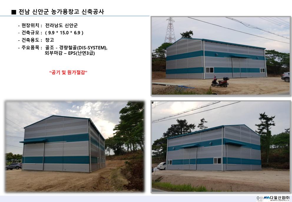 2018년 | 전남 신안군 농가용창고 신축공사 페이지 정보 작성자 : 다일산업(주) 작성일 : 20-06-09 11:28 조회 : 7,184회 관련링크 본문 이전글 다음글 목록 개인정보처리방침 “다일산업(주)“(이하 “회사”)는 개인정보보호법에 따라 이용자의 개인정보 보호 및 권익을 보호하고 개인정보와 관련한 이용자의 고충을 원활하게 처리할 수 있도록 다음과 같은 처리방침을 두고 있습니다. 고객님의 정보는 개인의 소중한 자산인 동시에 회사 운영의 중요한 자료가 됩니다. 그러므로 회사는 운영상의 모든 과정에서 고객님의 개인정보를 보호하는데 최선의 노력을 다할 것을 약속 드립니다. 회사는 개인정보처리방침을 개정하는 경우 웹사이트를 통하여 공지할 것입니다. 제 1장. 개인정보 수집 동의절차 회사는 귀하께서 웹사이트의 개인정보보호방침 또는 이용약관의 내용에 대해 (동의한다)버튼 또는 (동의하지 않는다)버튼을 클릭할 수 있는 절차를 마련하여 (동의한다)버튼을 클릭하면 개인정보 수집에 대해 동의한 것으로 봅니다. 제 2장. 개인정보의 수집 및 이용 목적 회사는 개인정보를 다음의 목적을 위해 활용합니다. 처리한 개인정보는 다음의 목적 이외의 용도로는 사용되지 않으며 이용 목적이 변경될 시 사전동의를 구할 예정입니다. 가. 성명, 아이디, 비밀번호 : 회원 가입의사 확인, 서비스 부정이용 방지, 접속 빈도파악, 회원제 서비스 이용에 따른 본인 식별 절차 나. 이메일주소, 전화번호(수신여부 확인) : 고지사항 전달, 본인 의사 확인, 불만 처리 등 원활한 의사소통 경로의 확보, 이벤트 및 광고성 정보 제공 및 참여기회 제공, 접속 빈도파악 또는 회원의 서비스이용에 대한 통계 다. 주소, 전화번호 : 경품과 물품 배송에 대한 정확한 배송지의 확보 제 3장. 광고정보의 전송 가. 회사는 귀하의 명시적인 수신거부의사에 반하여 영리목적의 광고성 정보를 전송하지 않습니다. 나. 회사는 약관변경, 기타 서비스 이용에 관한 변경사항, 새로운 서비스/신상품이나 이벤트 정보, 기타 상품정보 등을 전자우편, 휴대폰 문자전송 기타 전지적 전송매체 등의 방법으로 알려드립니다. 이 경우 관련 법령상 명시사항 및 명시방법을 준수합니다. 다. 회사는 상품정보 안내 등 온라인 마케팅을 위해 광고성 정보를 전자우편 등으로 전송하는 경우 전자 우편의 제목란 및 본문란에 귀하가 쉽게 알아 볼 수 있도록 조치합니다. 제 4장. 개인정보의 수집범위 회사는 별도의 회원가입 절차 없이 대부분의 콘텐츠에 자유롭게 접근할 수 있습니다. 회원제 서비스를 이용하고자 할 경우 다음의 정보를 입력해주셔야 합니다. 가. 개인정보 수집항목 : 이름, 이메일, 생년월일, 아이디, 비밀번호, 성별, 주소, 휴대폰 번호(전화), 이메일 수신여부, SMS 수신여부, 서비스 이용기록, 접속로그, 받는 고객 정보(이름, 전화번호, 주소, 이메일) 나. 개인정보 수집방법 : 홈페이지 내 회원가입 및 게시판 등 제 5장. 개인정보의 보유 및 이용기간 회사는 개인정보 수집 및 이용목적이 달성된 후에는 해당 정보를 지체 없이 파기합니다. 단, 다음의 정보에 대해서는 아래의 이유로 명시한 기간 동안 보존합니다. -보존항목 : 이름, 로그인 ID, 비밀번호, 이메일, 생년월일 -보존근거 : 불량 회원의 부정한 이용의 재발 방지 -보존기간 : 1개월 그리고 관계법령의 규정에 의하여 보존할 필요가 있는 경우 회사는 아래와 같이 관계법령에서 정한 일정한 기간 동안 회원정보를 보관합니다. 소비자의 불만 또는 분쟁처리에 관한 기록 : 3년 (전자상거래 등에서의 소비자보호에 관한 법률) 제 6장. 개인정보의 파기 절차 및 방법 회사는 원칙적으로 개인정보 처리목적이 달성된 경우에는 지체 없이 해당 개인정보를 파기합니다. 파기의 절차, 기한 및 방법은 다음과 같습니다. -파기절차 회원님이 회원가입 등을 위해 입력하신 정보는 목적 달성 후 별도의 DB로 옮겨져(종이의 경우 별도의 서류함) 내부 방침 및 기타 관련 법령에 의한 정보보호 사유에 따라(보유 및 이용기간 참조) 일정 기간 저장 된 후 파기합니다. 별도 DB로 옮겨진 개인정보는 법률에 의한 경우가 아니고서는 보유 이외의 다른 목적으로 이용되지 않습니다. -파기기한 이용자의 개인정보는 개인정보의 보유기간이 경과된 경우에는 보유기간의 종료일로부터 5일 이내에, 개인정보의 처리 목적 달성, 해당 서비스의 폐지, 사업의 종료 등 그 개인정보가 불필요하게 되었을 때에는 개인정보의 처리가 불필요한 것으로 인정되는 날로부터 5일 이내에 그 개인정보를 파기합니다. -파기방법 전자적 파일 형태의 정보는 기록을 재생할 수 없는 기술적 방법을 사용합니다. 제 7장. 개인정보의 안전성 확보 조치 회사는 개인정보보호법 제29조에 따라 다음과 같이 안전성 확보에 필요한 조치를 하고 있습니다. 가. 개인정보 취급 직원의 최소화 및 교육 개인정보를 취급하는 직원을 지정하고 담당자에 한정시켜 최소화 하여 개인정보를 관리하는 대책을 시행하고 있습니다. 나. 개인정보의 암호화 이용자의 개인정보는 비밀번호는 암호화 되어 저장 및 관리되고 있어, 본인만이 알 수 있으며 중요한 데이터는 파