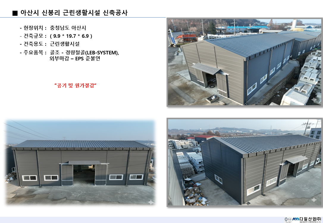 2025년 | 아산시 신봉리 근린생활시설 신축공사 페이지 정보 작성자 : 다일산업(주) 작성일 : 26-02-04 17:38 조회 : 69회 관련링크 본문 이전글 다음글 목록 개인정보처리방침 “다일산업(주)“(이하 “회사”)는 개인정보보호법에 따라 이용자의 개인정보 보호 및 권익을 보호하고 개인정보와 관련한 이용자의 고충을 원활하게 처리할 수 있도록 다음과 같은 처리방침을 두고 있습니다. 고객님의 정보는 개인의 소중한 자산인 동시에 회사 운영의 중요한 자료가 됩니다. 그러므로 회사는 운영상의 모든 과정에서 고객님의 개인정보를 보호하는데 최선의 노력을 다할 것을 약속 드립니다. 회사는 개인정보처리방침을 개정하는 경우 웹사이트를 통하여 공지할 것입니다. 제 1장. 개인정보 수집 동의절차 회사는 귀하께서 웹사이트의 개인정보보호방침 또는 이용약관의 내용에 대해 (동의한다)버튼 또는 (동의하지 않는다)버튼을 클릭할 수 있는 절차를 마련하여 (동의한다)버튼을 클릭하면 개인정보 수집에 대해 동의한 것으로 봅니다. 제 2장. 개인정보의 수집 및 이용 목적 회사는 개인정보를 다음의 목적을 위해 활용합니다. 처리한 개인정보는 다음의 목적 이외의 용도로는 사용되지 않으며 이용 목적이 변경될 시 사전동의를 구할 예정입니다. 가. 성명, 아이디, 비밀번호 : 회원 가입의사 확인, 서비스 부정이용 방지, 접속 빈도파악, 회원제 서비스 이용에 따른 본인 식별 절차 나. 이메일주소, 전화번호(수신여부 확인) : 고지사항 전달, 본인 의사 확인, 불만 처리 등 원활한 의사소통 경로의 확보, 이벤트 및 광고성 정보 제공 및 참여기회 제공, 접속 빈도파악 또는 회원의 서비스이용에 대한 통계 다. 주소, 전화번호 : 경품과 물품 배송에 대한 정확한 배송지의 확보 제 3장. 광고정보의 전송 가. 회사는 귀하의 명시적인 수신거부의사에 반하여 영리목적의 광고성 정보를 전송하지 않습니다. 나. 회사는 약관변경, 기타 서비스 이용에 관한 변경사항, 새로운 서비스/신상품이나 이벤트 정보, 기타 상품정보 등을 전자우편, 휴대폰 문자전송 기타 전지적 전송매체 등의 방법으로 알려드립니다. 이 경우 관련 법령상 명시사항 및 명시방법을 준수합니다. 다. 회사는 상품정보 안내 등 온라인 마케팅을 위해 광고성 정보를 전자우편 등으로 전송하는 경우 전자 우편의 제목란 및 본문란에 귀하가 쉽게 알아 볼 수 있도록 조치합니다. 제 4장. 개인정보의 수집범위 회사는 별도의 회원가입 절차 없이 대부분의 콘텐츠에 자유롭게 접근할 수 있습니다. 회원제 서비스를 이용하고자 할 경우 다음의 정보를 입력해주셔야 합니다. 가. 개인정보 수집항목 : 이름, 이메일, 생년월일, 아이디, 비밀번호, 성별, 주소, 휴대폰 번호(전화), 이메일 수신여부, SMS 수신여부, 서비스 이용기록, 접속로그, 받는 고객 정보(이름, 전화번호, 주소, 이메일) 나. 개인정보 수집방법 : 홈페이지 내 회원가입 및 게시판 등 제 5장. 개인정보의 보유 및 이용기간 회사는 개인정보 수집 및 이용목적이 달성된 후에는 해당 정보를 지체 없이 파기합니다. 단, 다음의 정보에 대해서는 아래의 이유로 명시한 기간 동안 보존합니다. -보존항목 : 이름, 로그인 ID, 비밀번호, 이메일, 생년월일 -보존근거 : 불량 회원의 부정한 이용의 재발 방지 -보존기간 : 1개월 그리고 관계법령의 규정에 의하여 보존할 필요가 있는 경우 회사는 아래와 같이 관계법령에서 정한 일정한 기간 동안 회원정보를 보관합니다. 소비자의 불만 또는 분쟁처리에 관한 기록 : 3년 (전자상거래 등에서의 소비자보호에 관한 법률) 제 6장. 개인정보의 파기 절차 및 방법 회사는 원칙적으로 개인정보 처리목적이 달성된 경우에는 지체 없이 해당 개인정보를 파기합니다. 파기의 절차, 기한 및 방법은 다음과 같습니다. -파기절차 회원님이 회원가입 등을 위해 입력하신 정보는 목적 달성 후 별도의 DB로 옮겨져(종이의 경우 별도의 서류함) 내부 방침 및 기타 관련 법령에 의한 정보보호 사유에 따라(보유 및 이용기간 참조) 일정 기간 저장 된 후 파기합니다. 별도 DB로 옮겨진 개인정보는 법률에 의한 경우가 아니고서는 보유 이외의 다른 목적으로 이용되지 않습니다. -파기기한 이용자의 개인정보는 개인정보의 보유기간이 경과된 경우에는 보유기간의 종료일로부터 5일 이내에, 개인정보의 처리 목적 달성, 해당 서비스의 폐지, 사업의 종료 등 그 개인정보가 불필요하게 되었을 때에는 개인정보의 처리가 불필요한 것으로 인정되는 날로부터 5일 이내에 그 개인정보를 파기합니다. -파기방법 전자적 파일 형태의 정보는 기록을 재생할 수 없는 기술적 방법을 사용합니다. 제 7장. 개인정보의 안전성 확보 조치 회사는 개인정보보호법 제29조에 따라 다음과 같이 안전성 확보에 필요한 조치를 하고 있습니다. 가. 개인정보 취급 직원의 최소화 및 교육 개인정보를 취급하는 직원을 지정하고 담당자에 한정시켜 최소화 하여 개인정보를 관리하는 대책을 시행하고 있습니다. 나. 개인정보의 암호화 이용자의 개인정보는 비밀번호는 암호화 되어 저장 및 관리되고 있어, 본인만이 알 수 있으며 중요한 데이터는 